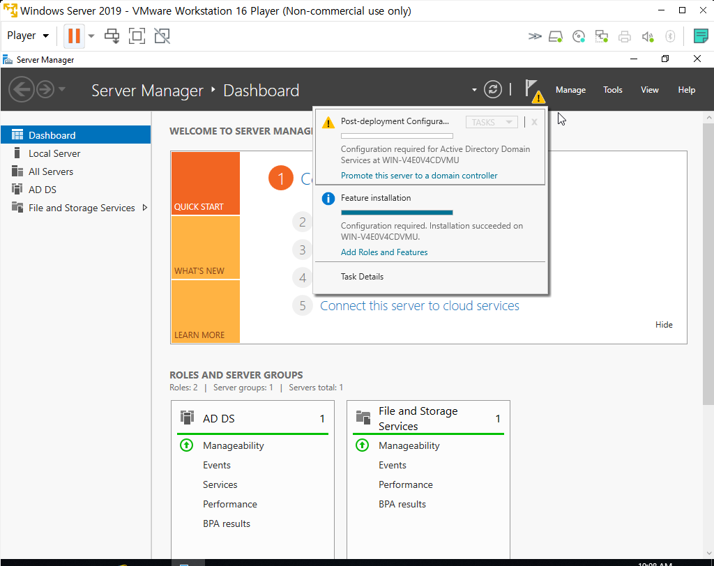 1. Windows Server 2019의 Server Manager에서 AD를 구성할 수 있다.