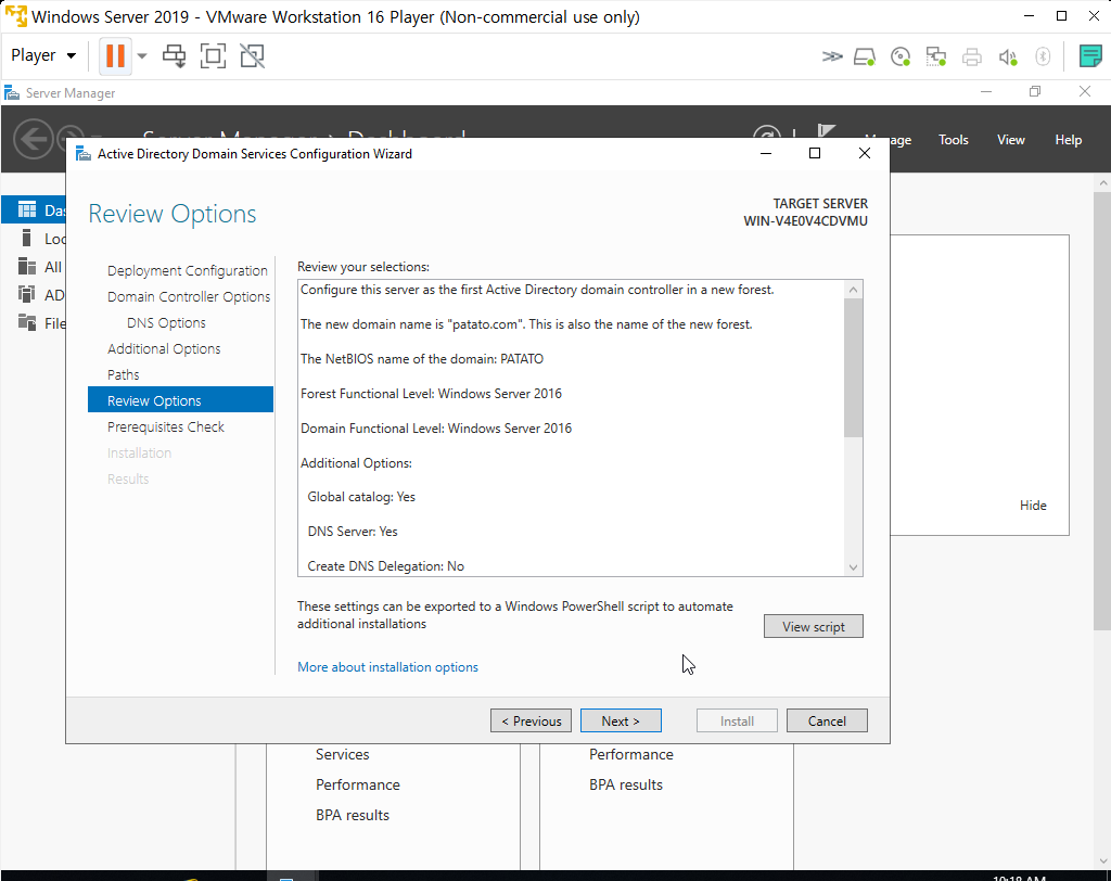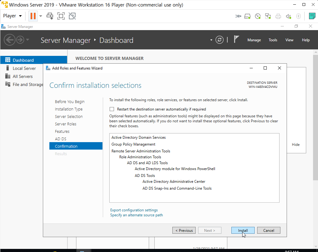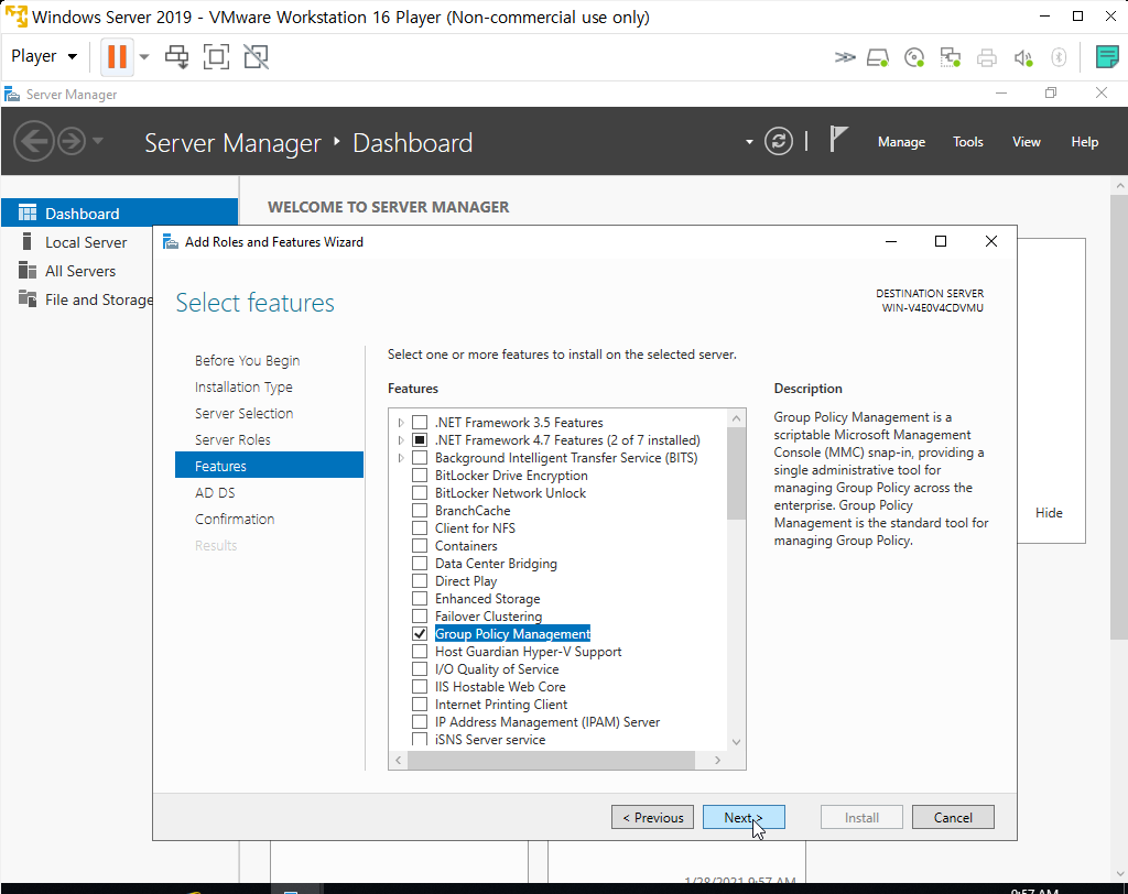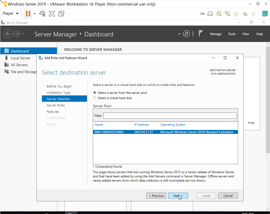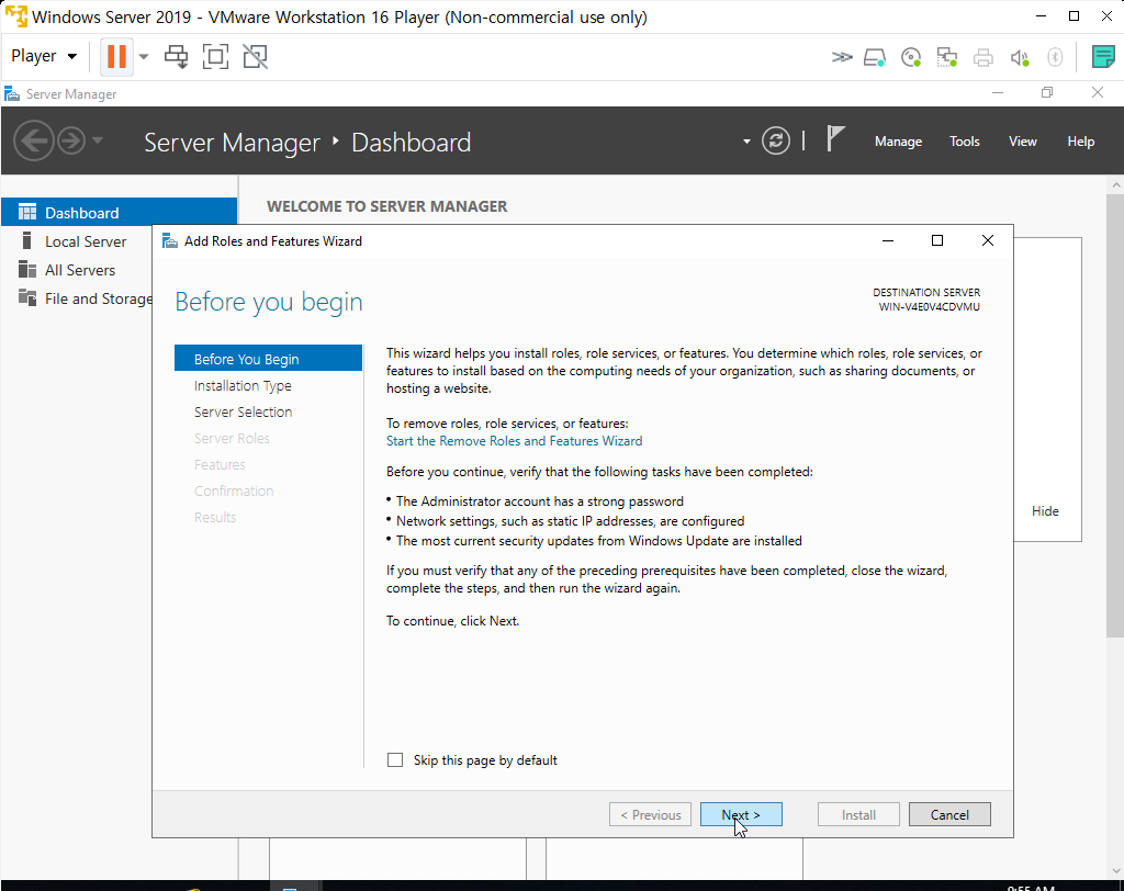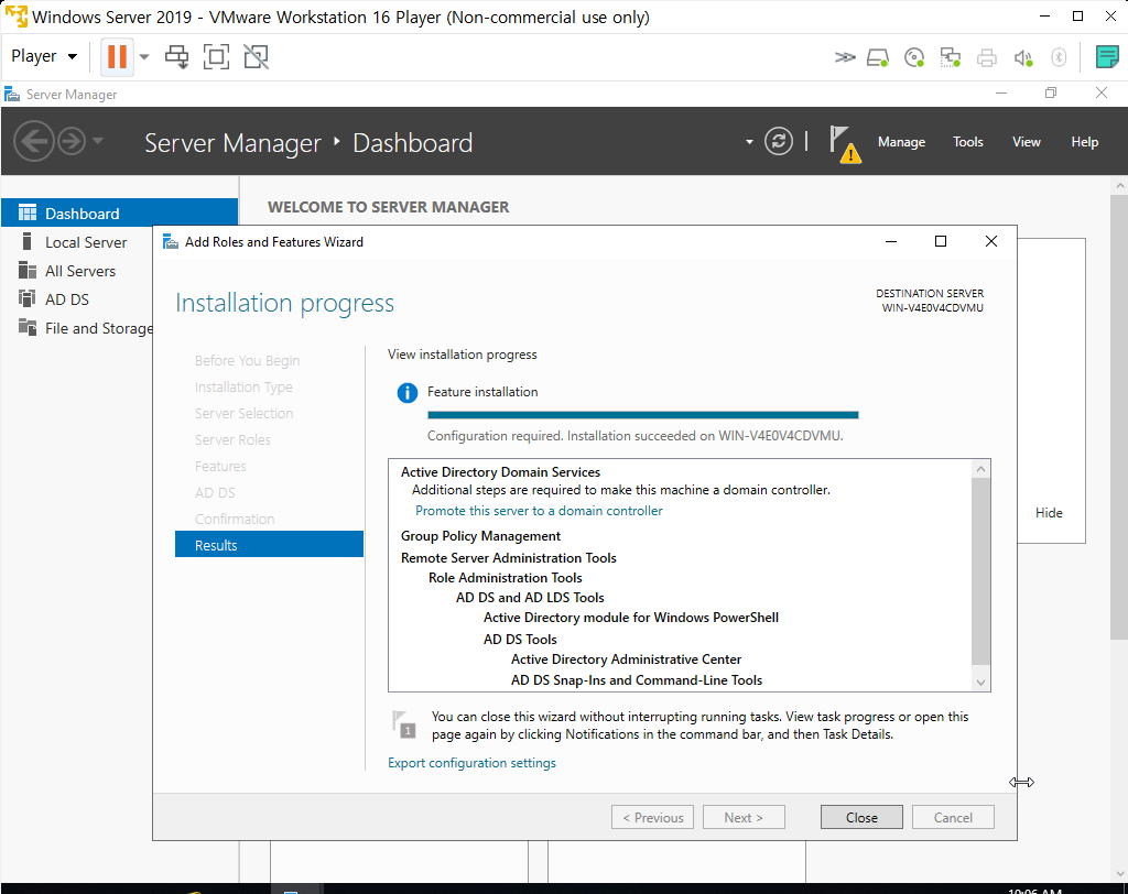 VMware Workstation16 Player에 가상으로 올렸던 Windows Server 2019에서