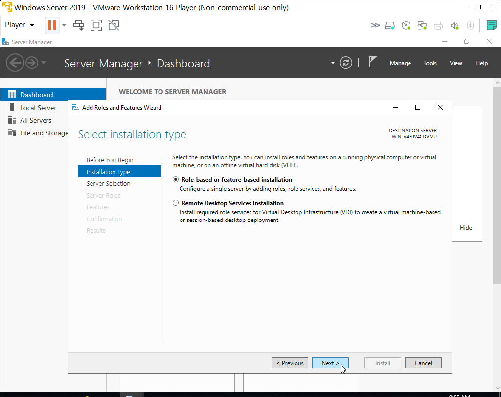 4. Role-based or feature-based installation 을 클릭하고 Next 해주자.