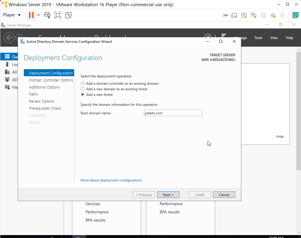 13. Add d new forest를 체크해주고 도메인 네임을 적어주자.