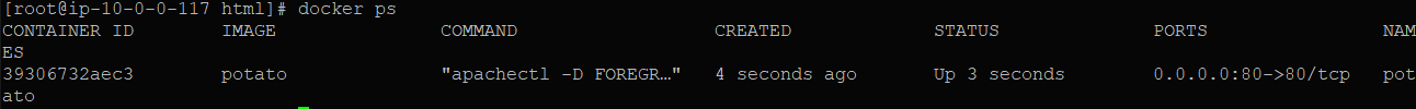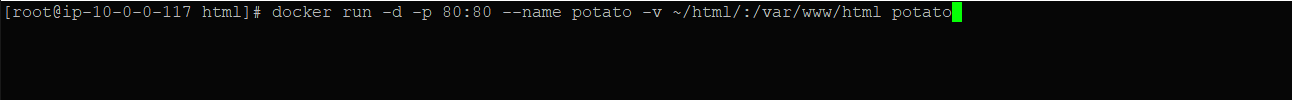 # docker run -d -p 80:80 --name potato -v ~/html:/var/www/html potato