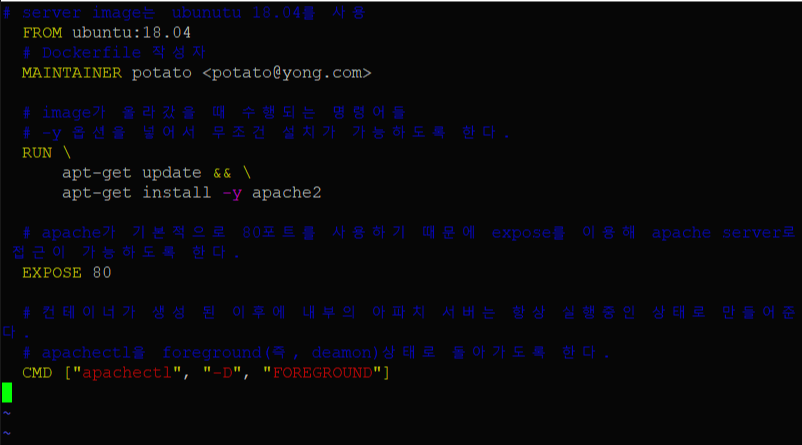 Dockerfile 예시파일을 하나 작성해서 아파치 웹서버를 띄어보도록 하자