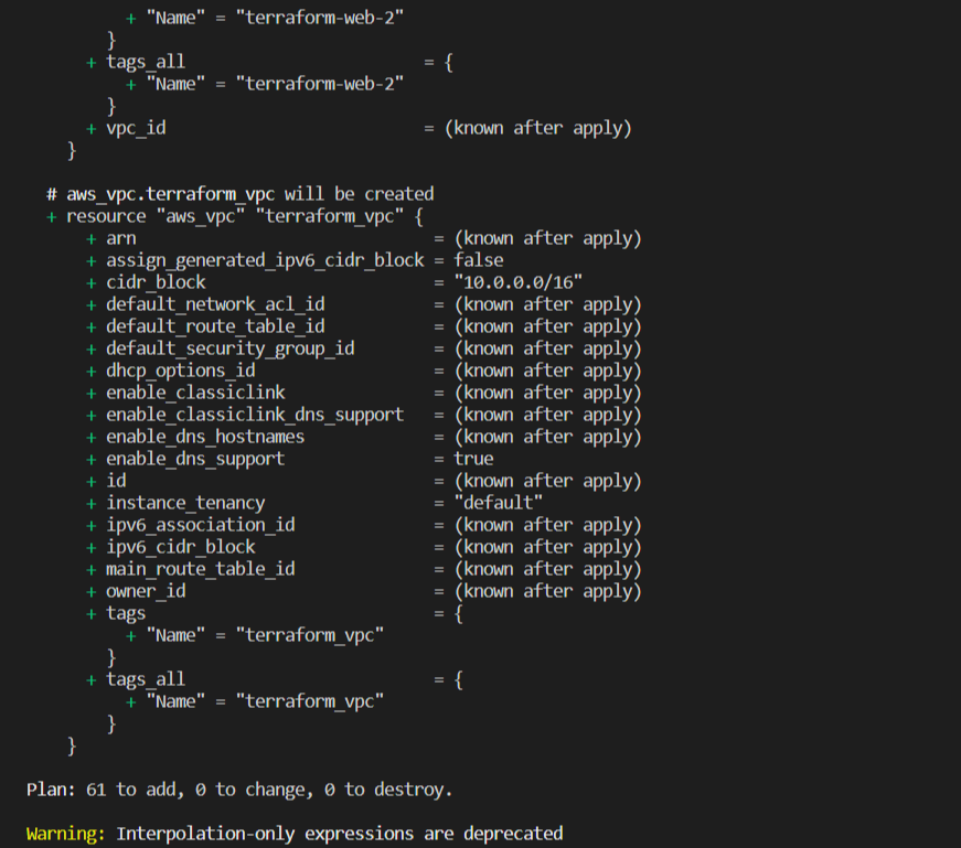 실제로 코드로 작성한 인프라를 배포하는 명령어이다. apply를 사용하면 지정했던 provider에 실제로 해당 인프라가 생성되고 작업 결과가 tf파일에 저장된다.