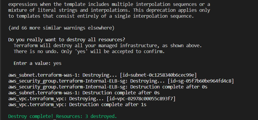 terraform destory는 apply를 통해 생성했던 인프라를 제거하는 명령어이다.