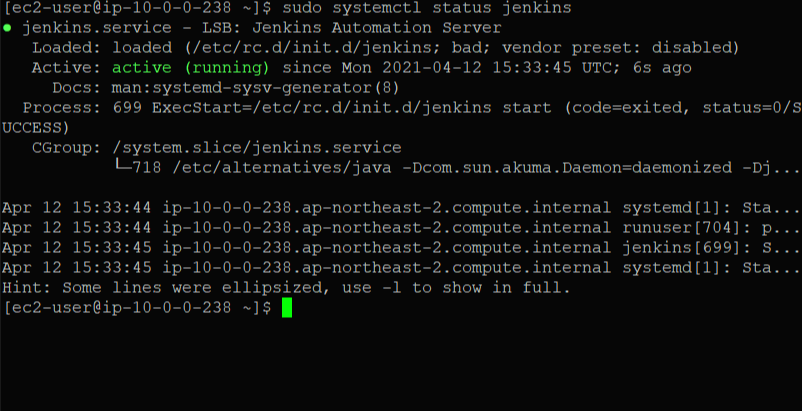 4. 설치가 완료되면 젠킨스를 실행시킨 뒤, 상태 확인