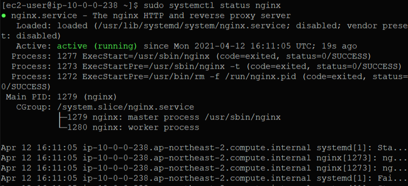 2. nginx 가 설치 되었으면 실행한 뒤, 상태 확인