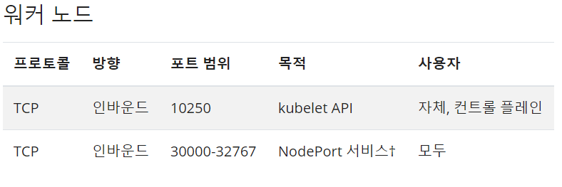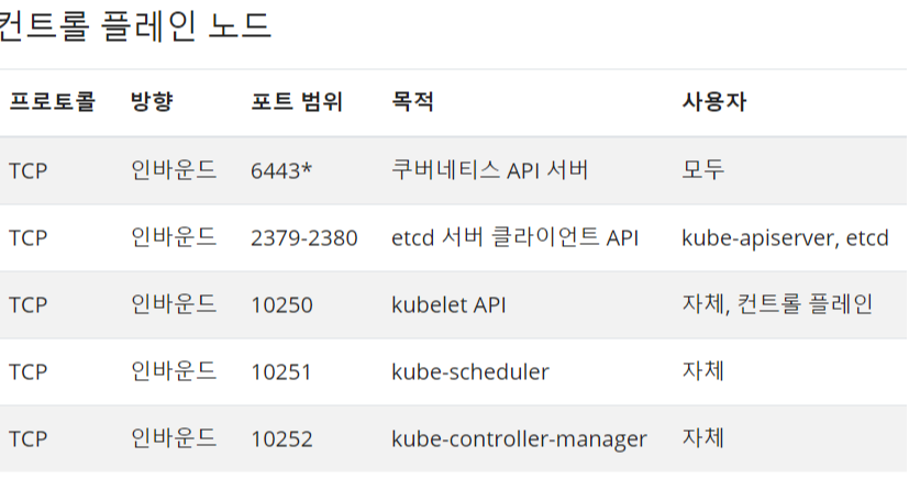 * kubenetes 구성 요소가 사용하는 포트에 대해 방화벽 오픈