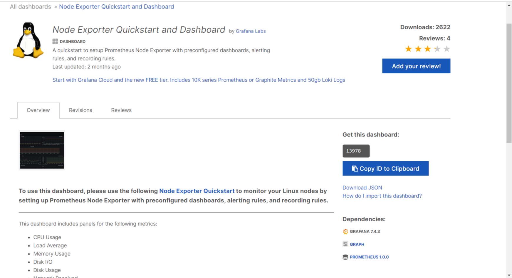 Grafana 공식 홈페이지에서 제공하는 https://grafana.com/grafana/dashboards 에서 대시보드 템플릿을 사용하여 대시보드를 생성해주도록 하자.
