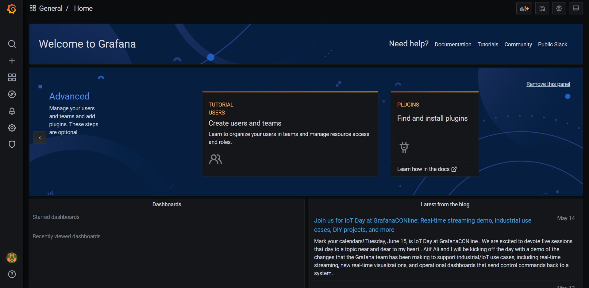 1. Grafana에 로그인하면 처음엔 이러한 화면이 나타나게 될 것이다.