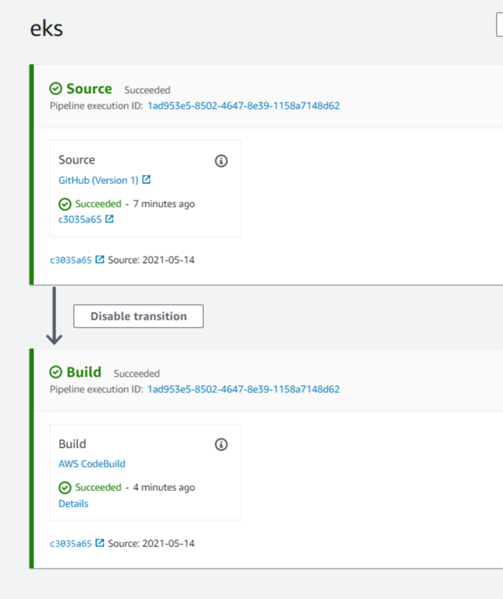 5. CodeBuild가 성공하면 SUCCEEDED 라는 메시지가 오게 되면 성공..