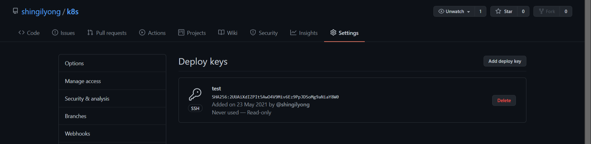 먼저 Github에 생성된 Pubilc Key를 등록해주어야 한다. Pubilc Key는 앞에서 생성했던 .pub 파일이다.