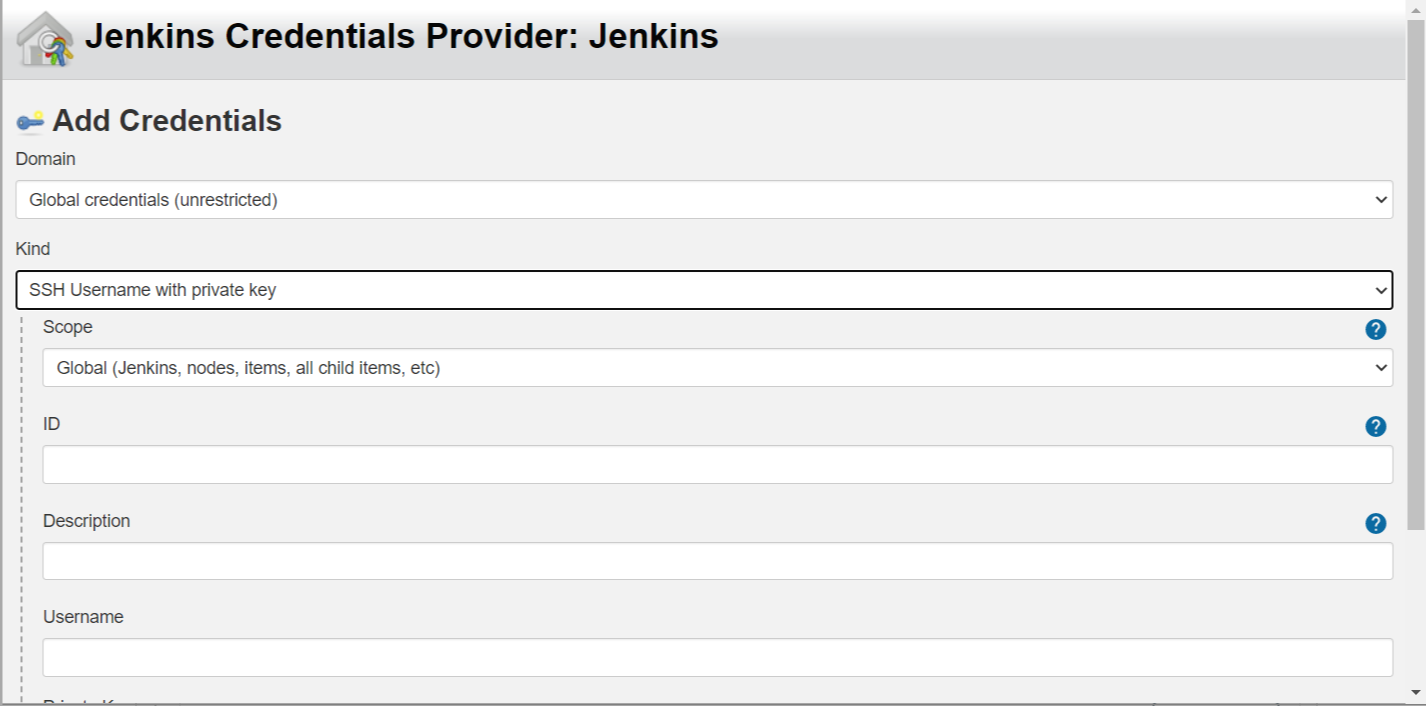 Credentials > add 를 눌러서 Private Key를 등록할 수 있다.