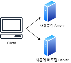 실제로 서비스 중인 서버 1대와 새롭게 배포한 서버 1대를 사용하여 무중단 배포할 수 있다.