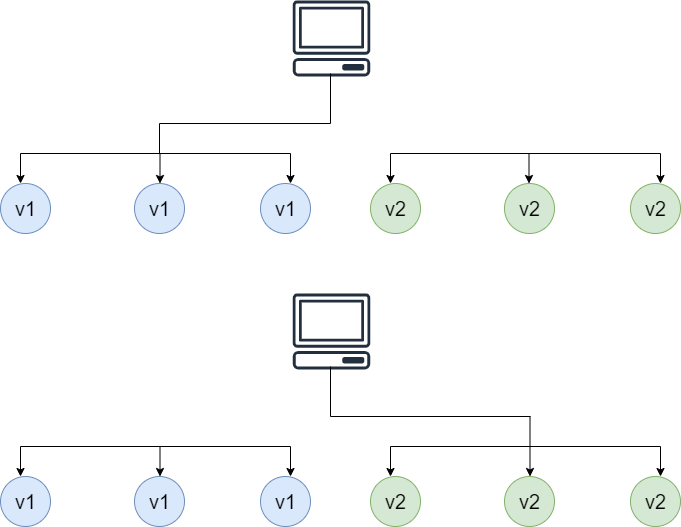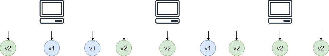 Downtime은 발생하지 않으나, 이전 버전과 새로운 버전이 공존하는 시간이 존재한다는 단점이 있다.