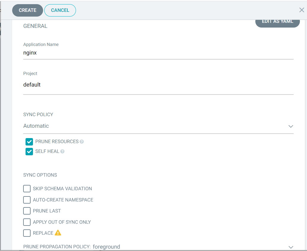 - Application Name : nginx를 배포할거니까 간단하게 nginx라고 지정