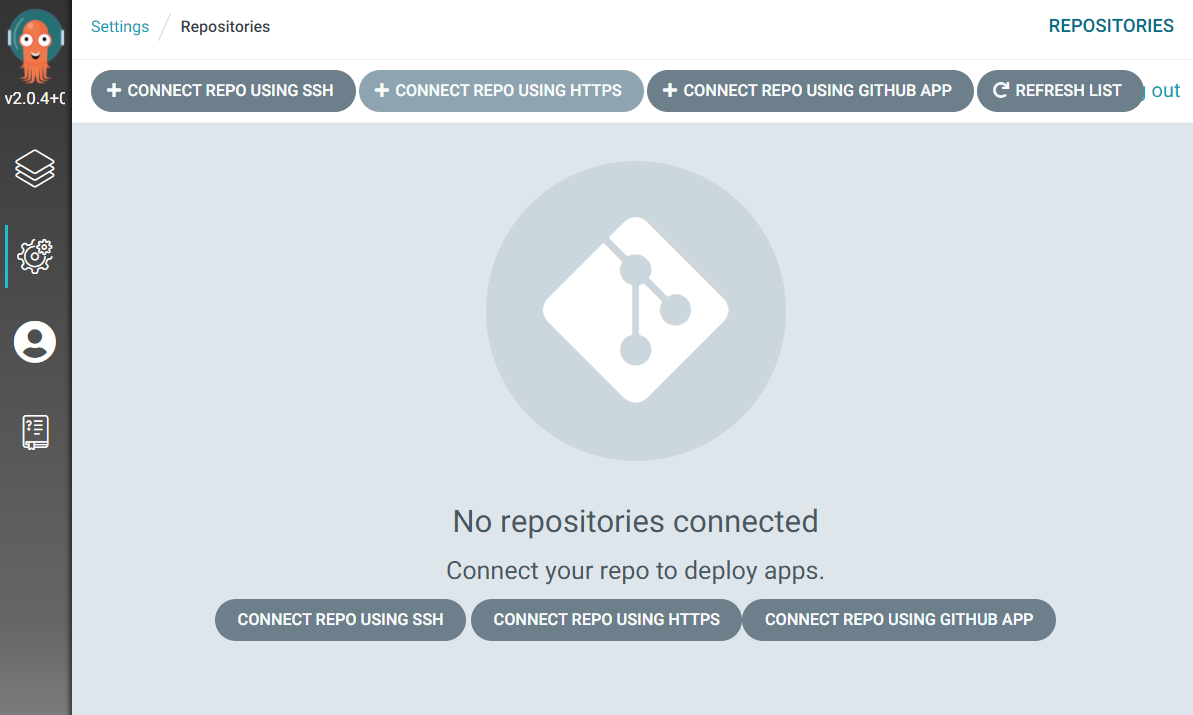 ArgoCD 창에서 설정탭으로 들어가고 Repositories를 선택해주자