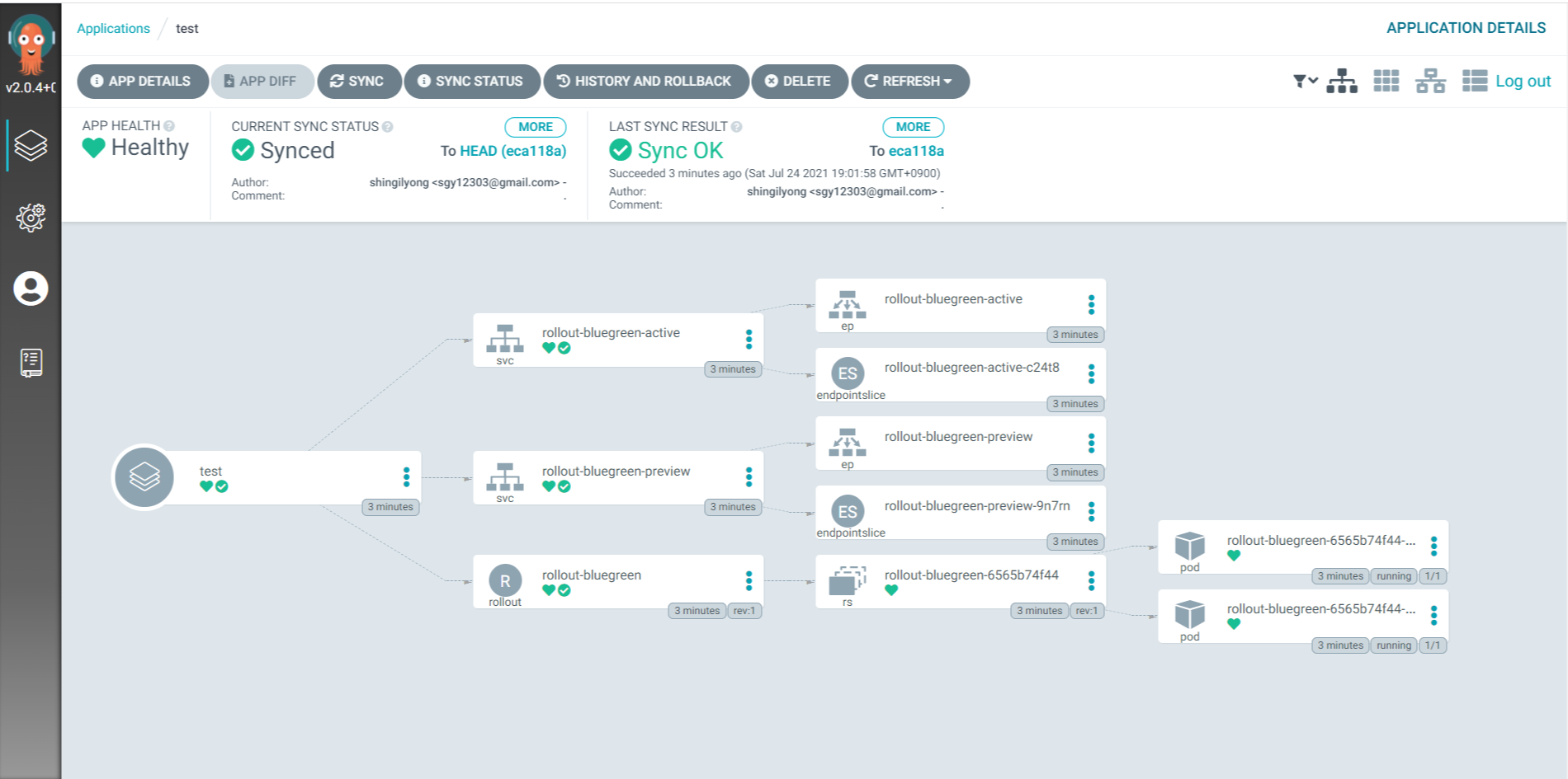 Blue/Green을 배포할 예제 yaml 파일이 준비가 되었다면, 이제 Argo CD에서 배포를 해보자.