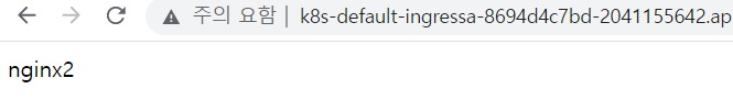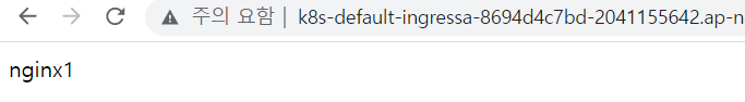 그리고 Ingress Controller로 사용중인 ALB의 DNS Name을 URL에 입력하면 nginx가 배포된 모습을 볼 수 있고, 제대로 로드밸런싱까지 해주고 있는것을 확인할 수 있다.