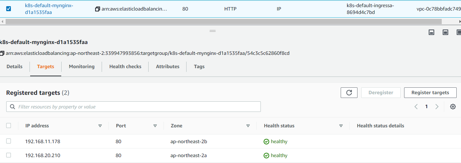 (ALB에 사용되는 타겟그룹) - 타겟그룹에 사용되는 2개의 워커노드 모두 healthy인것 확인하기.