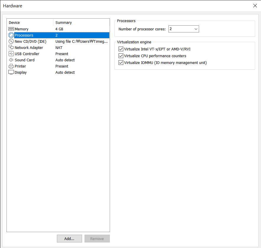 ★ Virtualization engine 항목에서 3개 모두 체크해준다. (가상화를 지원하는 항목이다.)