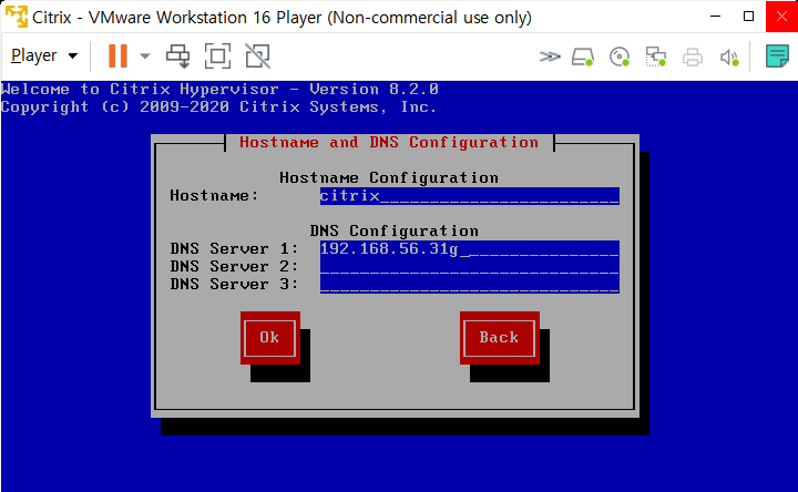 17. Hostname 은 Citrix로, DNS Server는 Windows AD Server를 바라보게 한다.