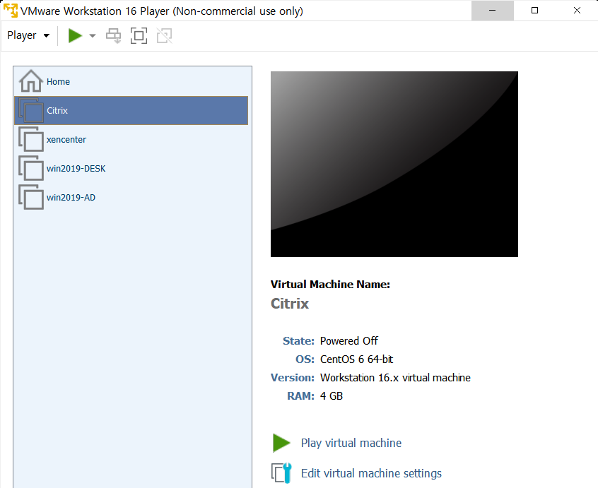 9. 방금 만든 Citrix라는 새 VM이 생성되었다. 실행시켜주자