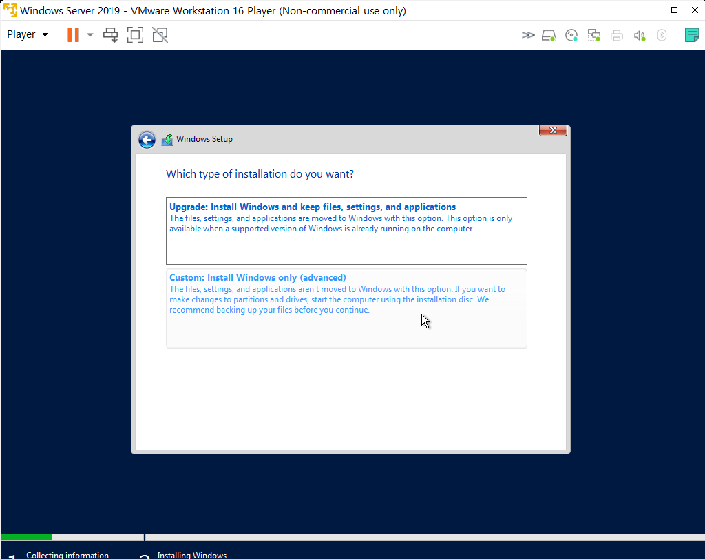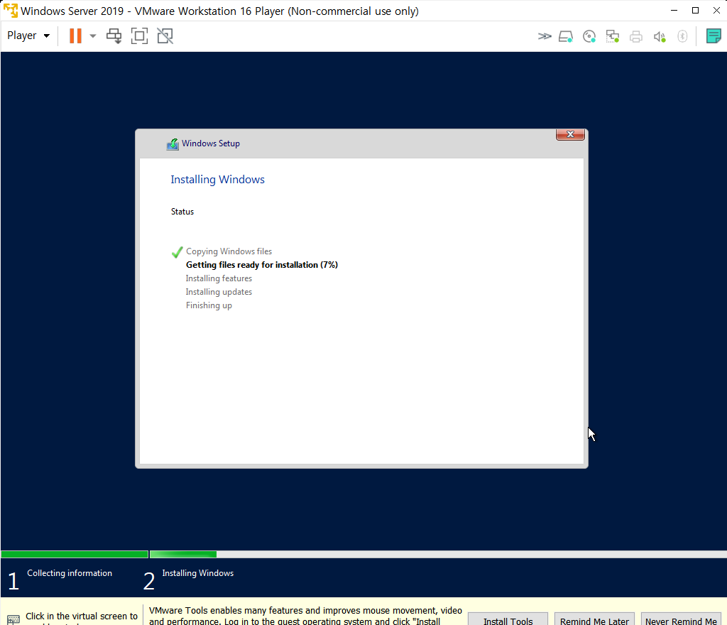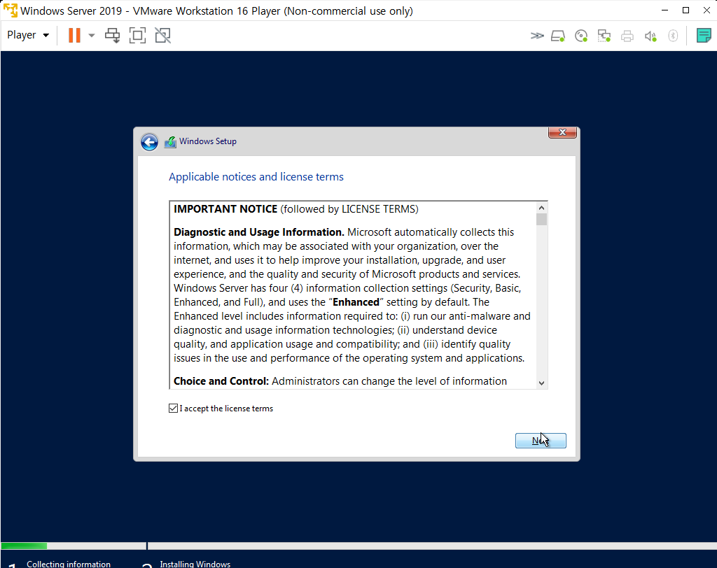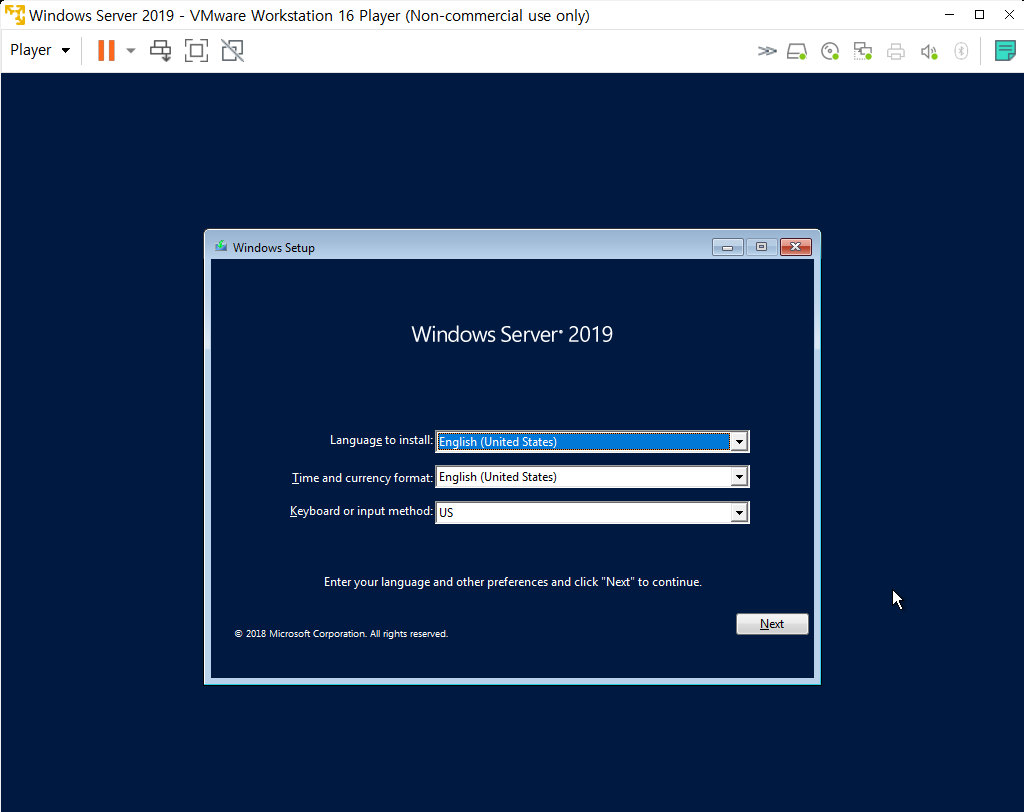VMware Workstation16 Player에서 Windows Server 2019 설치하고 구성하는 과정에 대해서 알아보자.