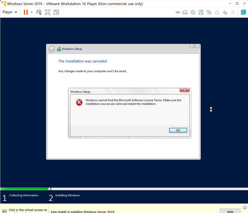 혹시나 VMware 에서 Windows Server 2019를 설치하려 할 때, 이런 화면과 마주하게 된다면 걱정하지 말자.