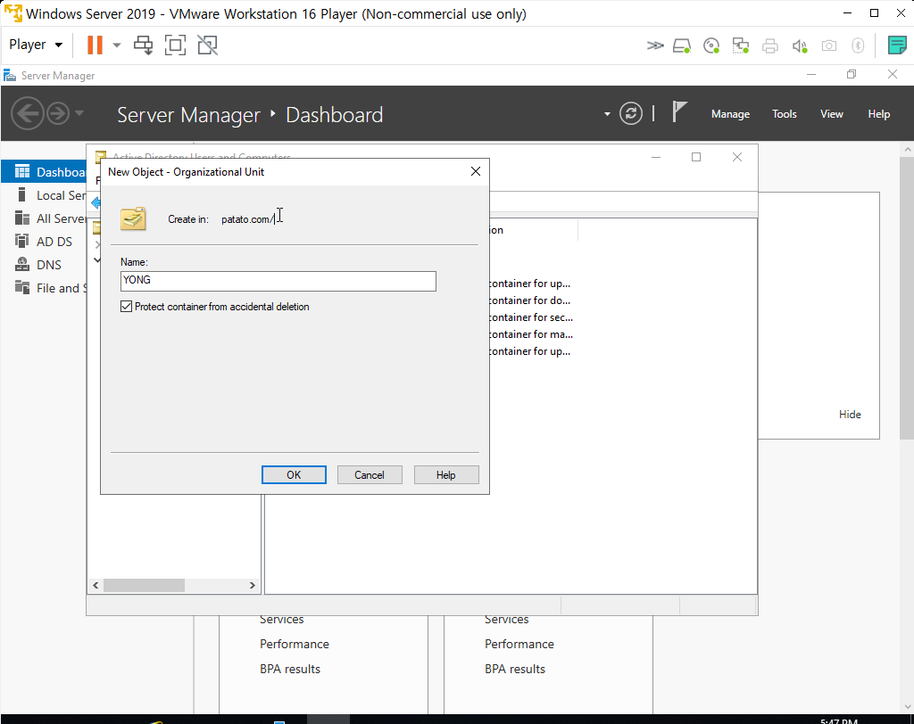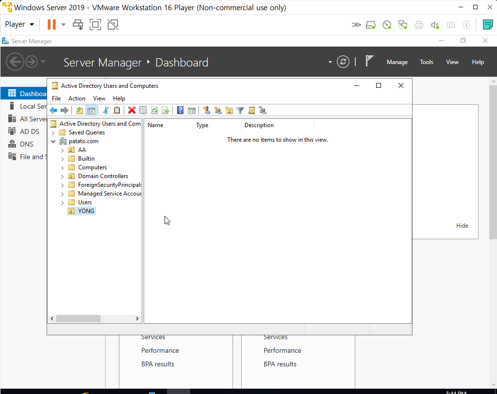 4. 맨 밑에 YONG 이라는 OU가 생성이 되었다.