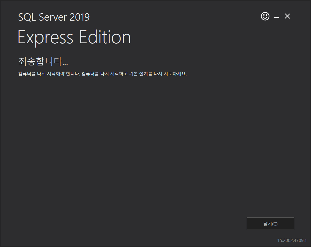 6. 재시작 하고나서 설치파일 다시 실행시켜주면 , 설치를 끝낼 수 있다.