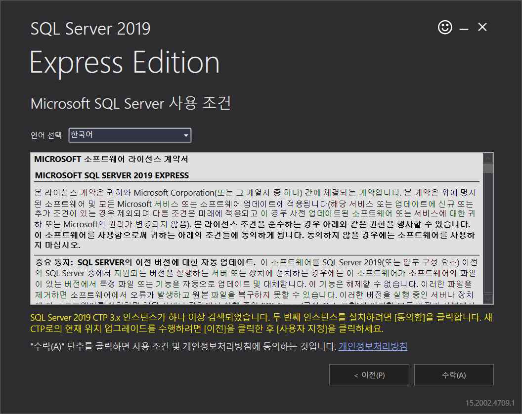 1. 마이크로소프트에서 다운받은 파일을 실행하면 이러한 창이 뜬다.