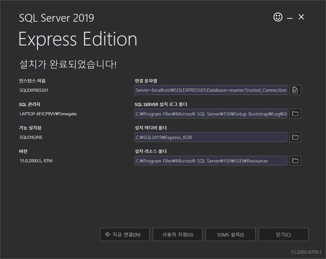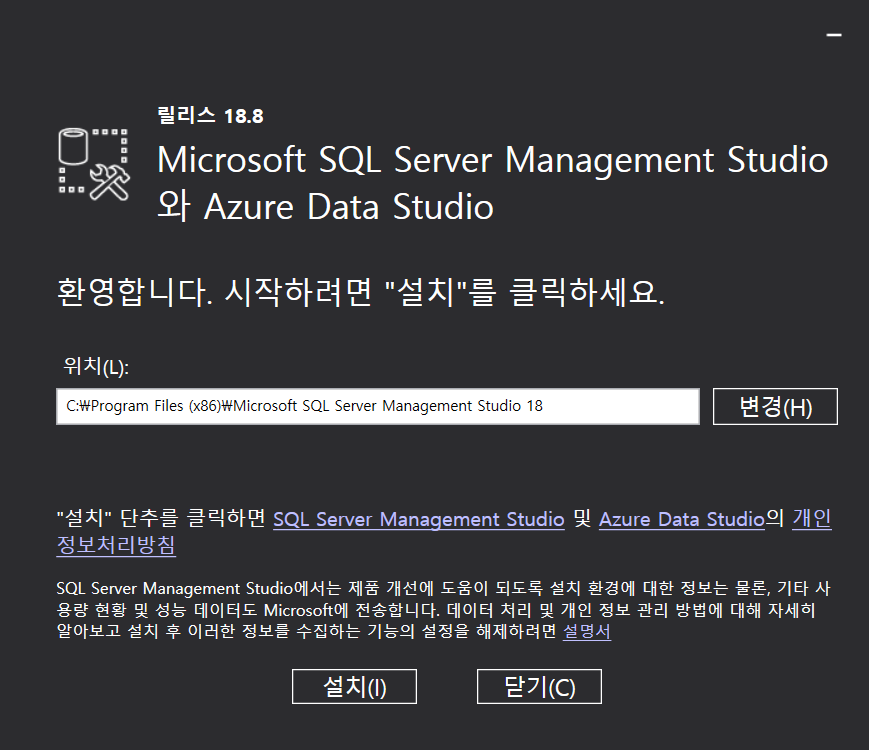 그리고 SSMS 설치까지 마저 해주자. SSMS 는 (SQL Server Management Studio)로 SQL Server를 관리할 수 있는 도구이다.