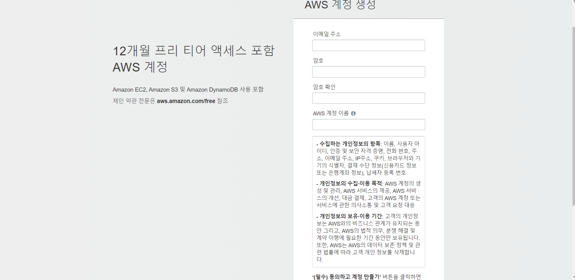 AWS는 계정을 만들면 12개월의 프리티어를 제공해준다. 그냥 썼다간 요금 폭탄 맞을수도 있으니, 프리티어를 사용해주도록 하자 ㅎㅎㅎㅎ
