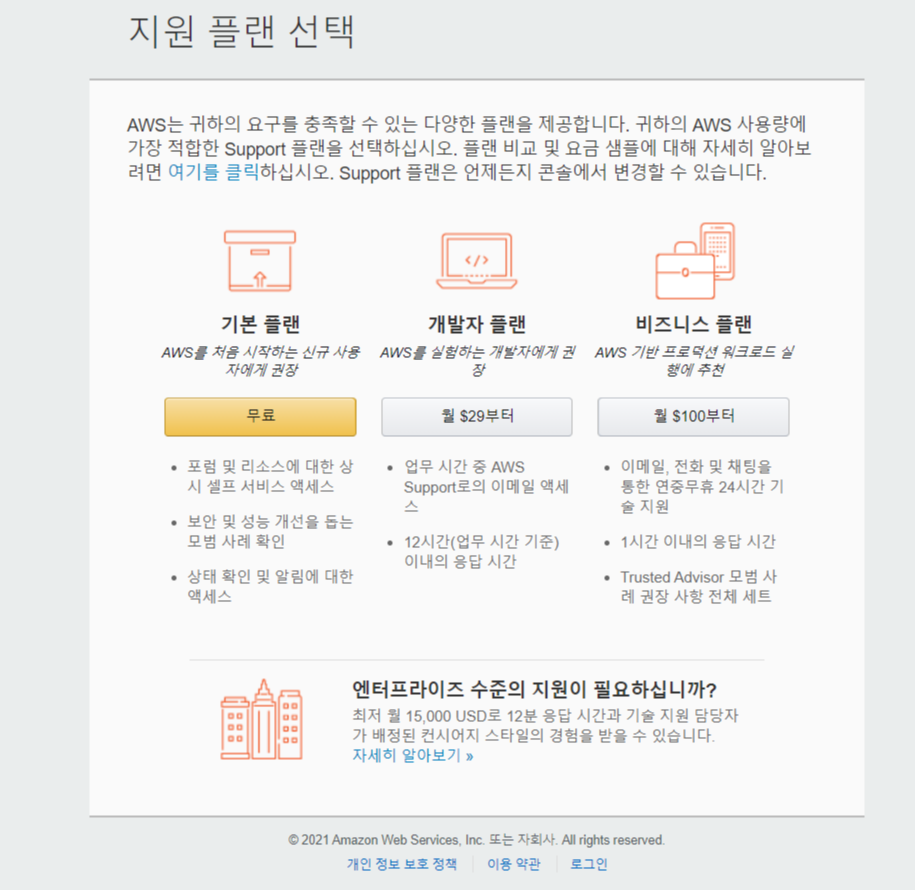 5. 우리는 프리티어니까 기본 플랜 선택해주자!