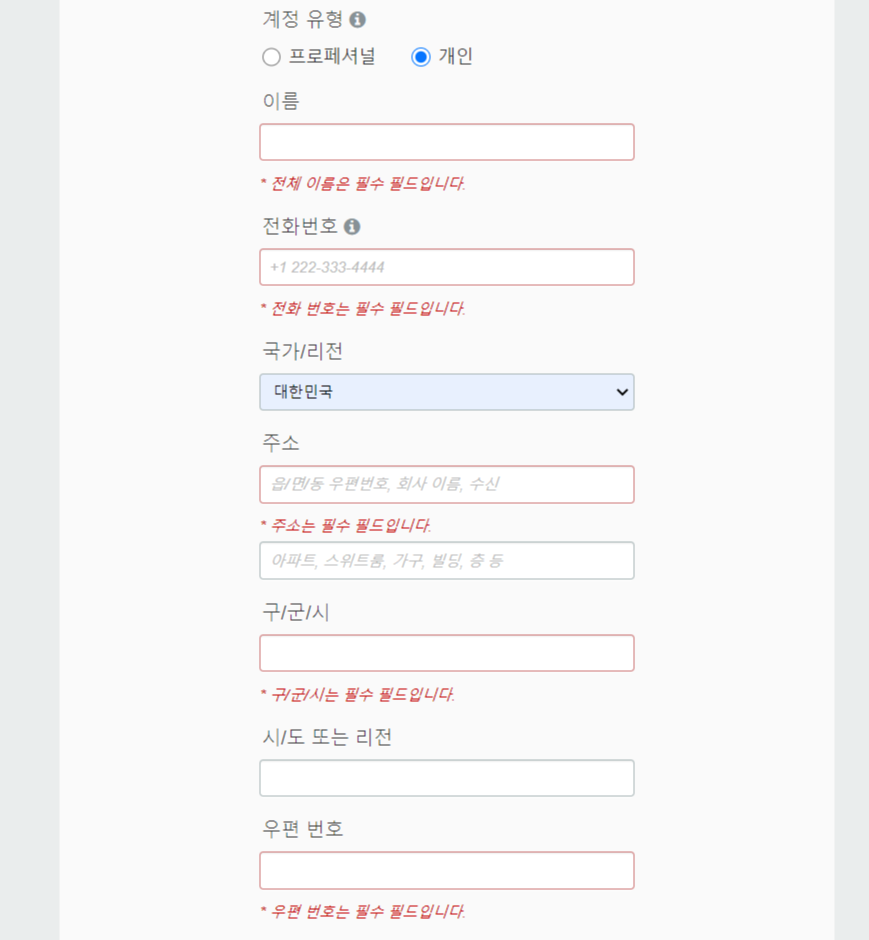 2. 계정 유형을 '개인' 으로 체크하고 계정 생성을 진행해주자.