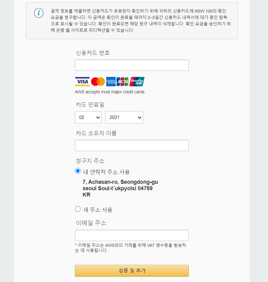3. AWS에 가입하려면 해외결제가 가능한 카드가 필요하다.
