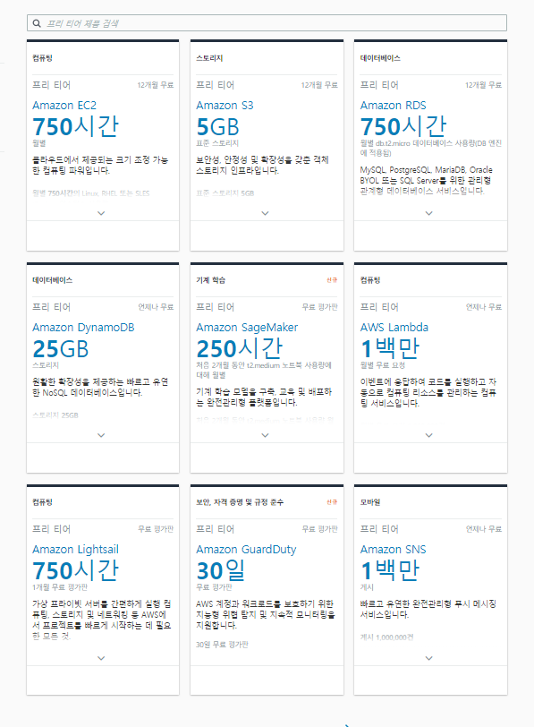 프리티어가 제공해주는 사용량은 다음과 같다고 한다. 입문하기에는 충분한것 같다.
