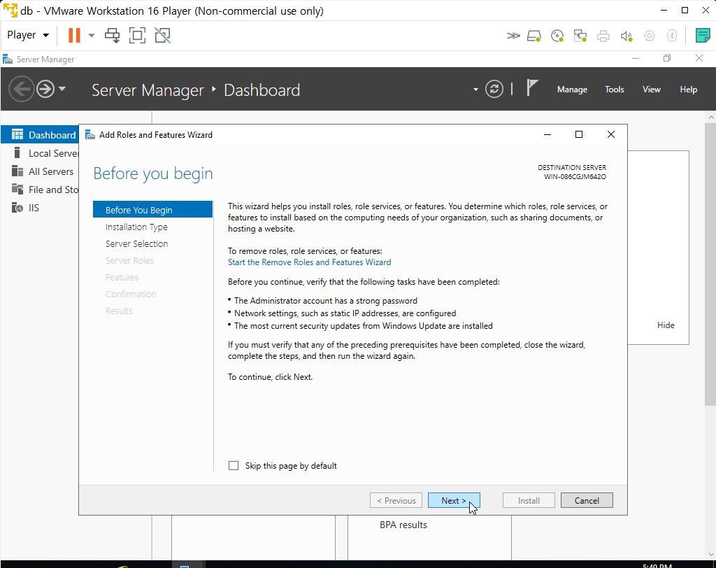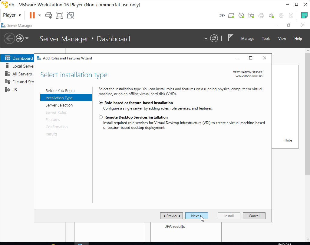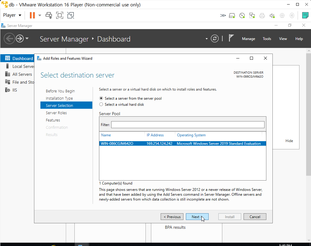 4. 지금 사용중인 서버 선택. Next 눌러주자