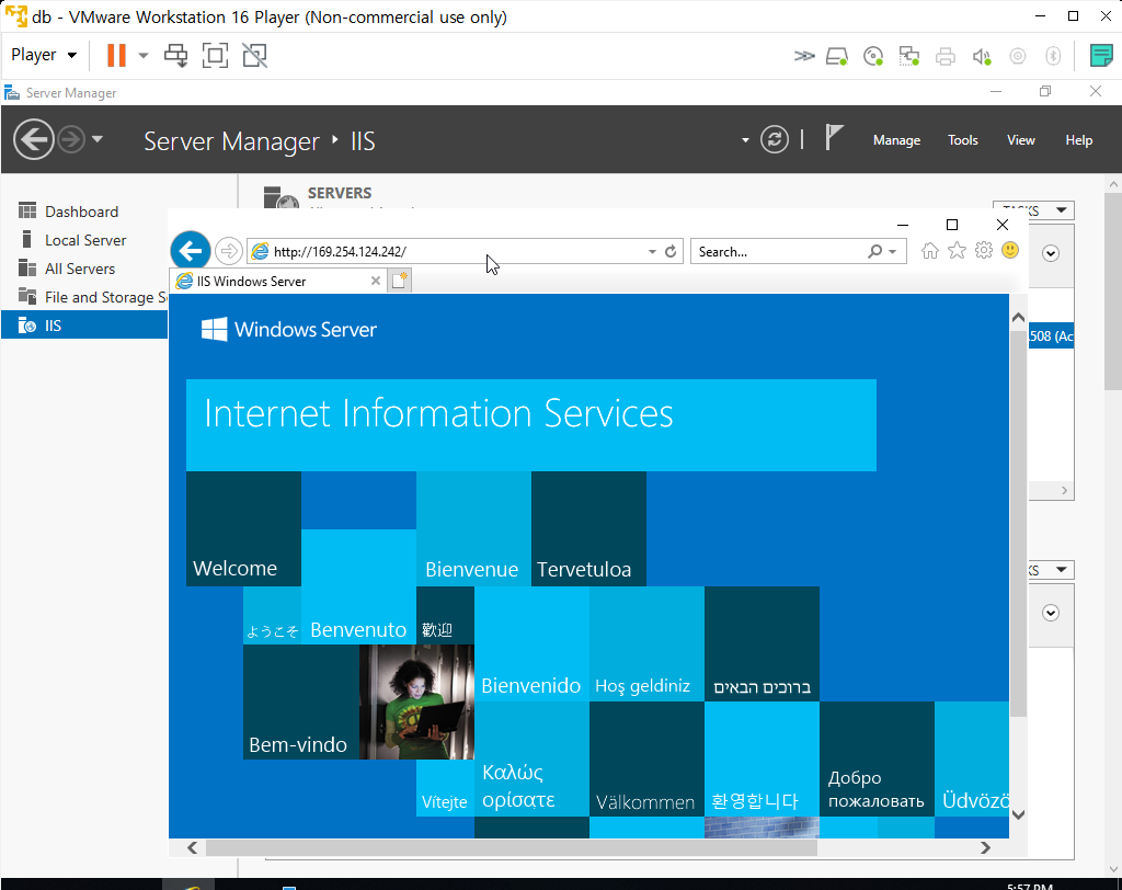 8. 인터넷 창을 열어서 주소창에 localhost 혹은 IP주소를 입력해서 IIS화면이 보이면 설치 성공이다.