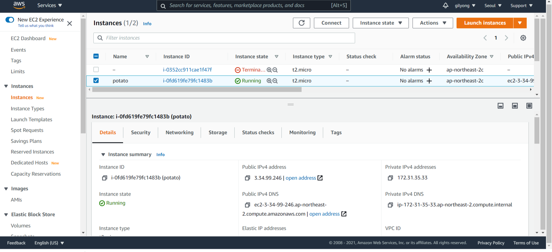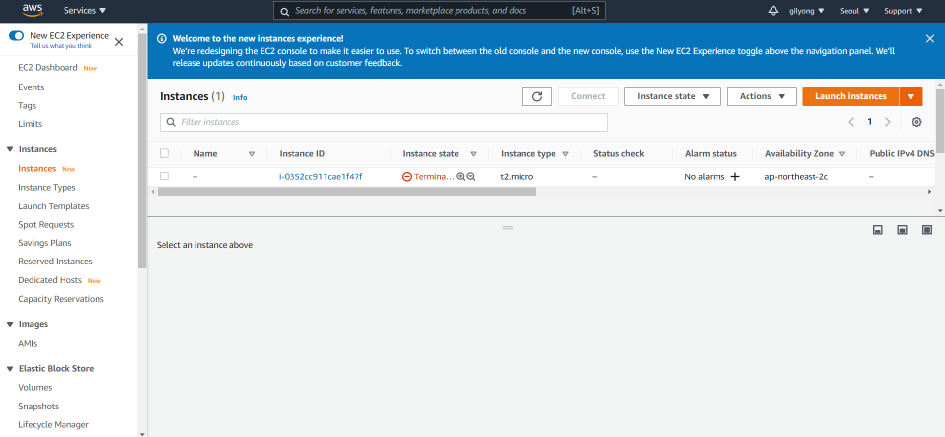 (사진에 생성되어 있는 인스턴스는 무시해주자,,, 삭제되는데 시간이 좀 걸린다)