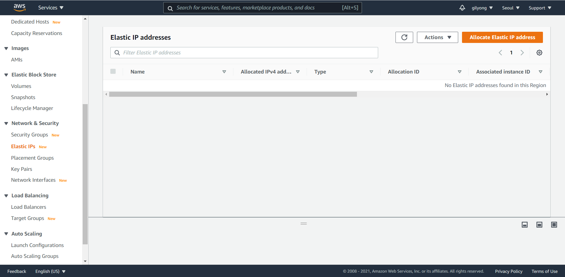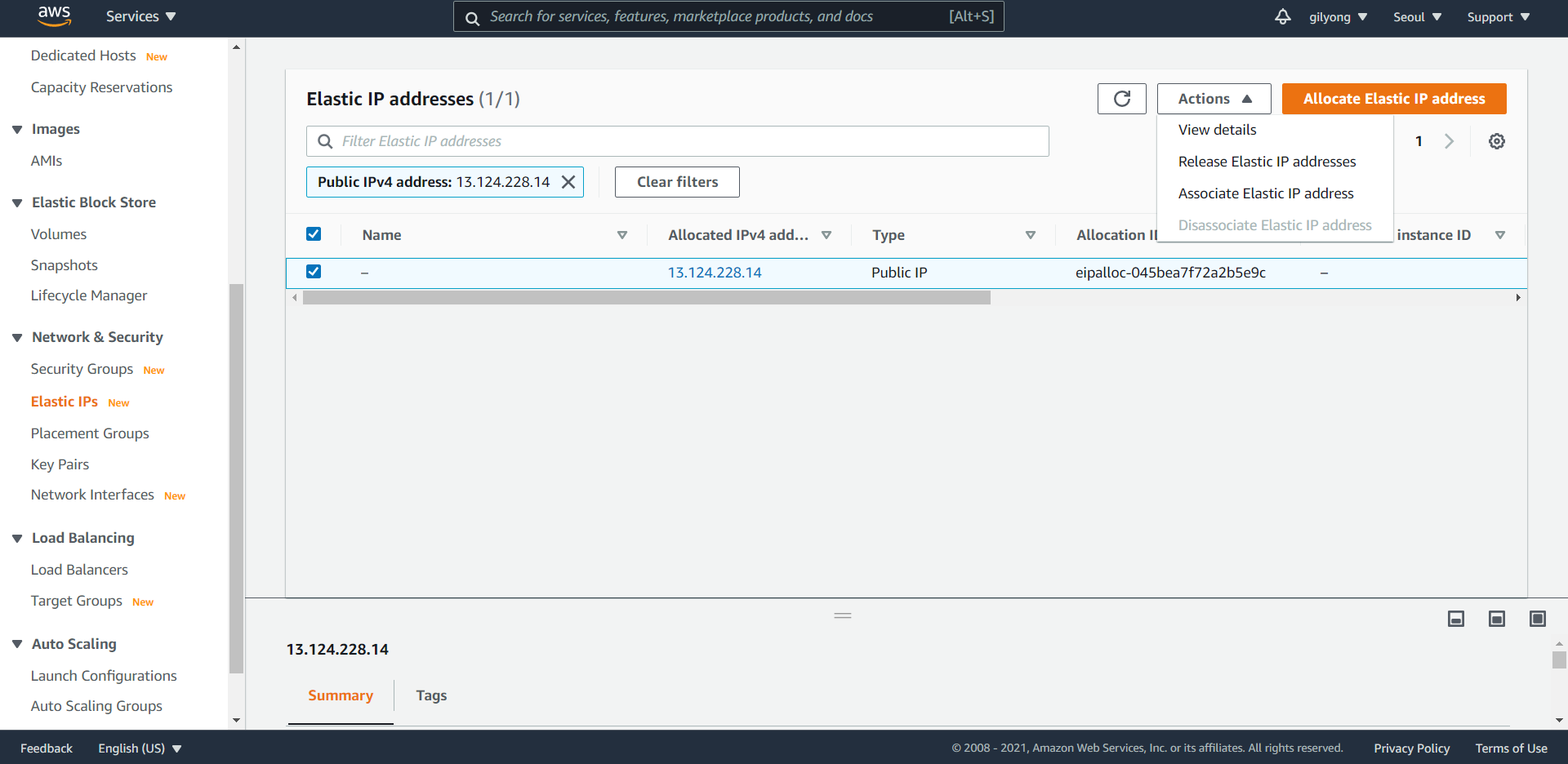 Elastic IP를 할당받고 인스턴스에 연결하는 과정에 대해서 살펴보도록 하자.