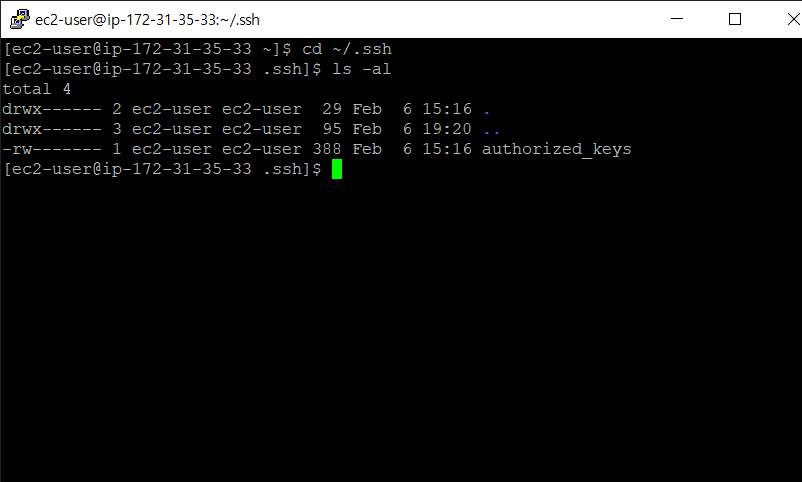 1. /.ssh 디렉토리로 이동해주고 ls -al 명령어를 통해 key pair 파일이 있는지 확인한다.