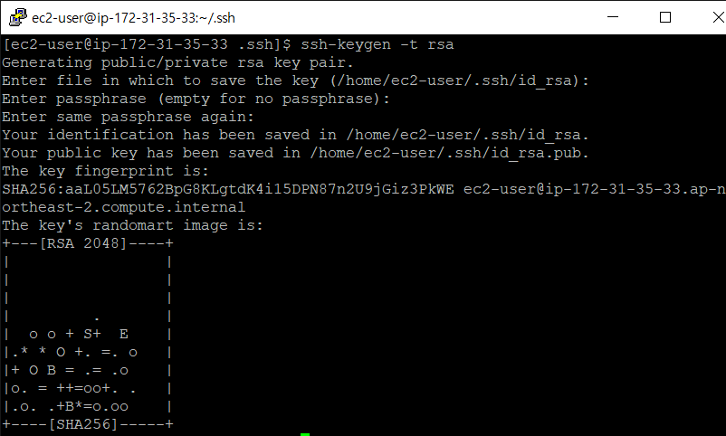 2. Key pair 파일이 없다면 ssh-keygen -t rsa 명령어를 통해 key pair를 생성 해주도록 하자