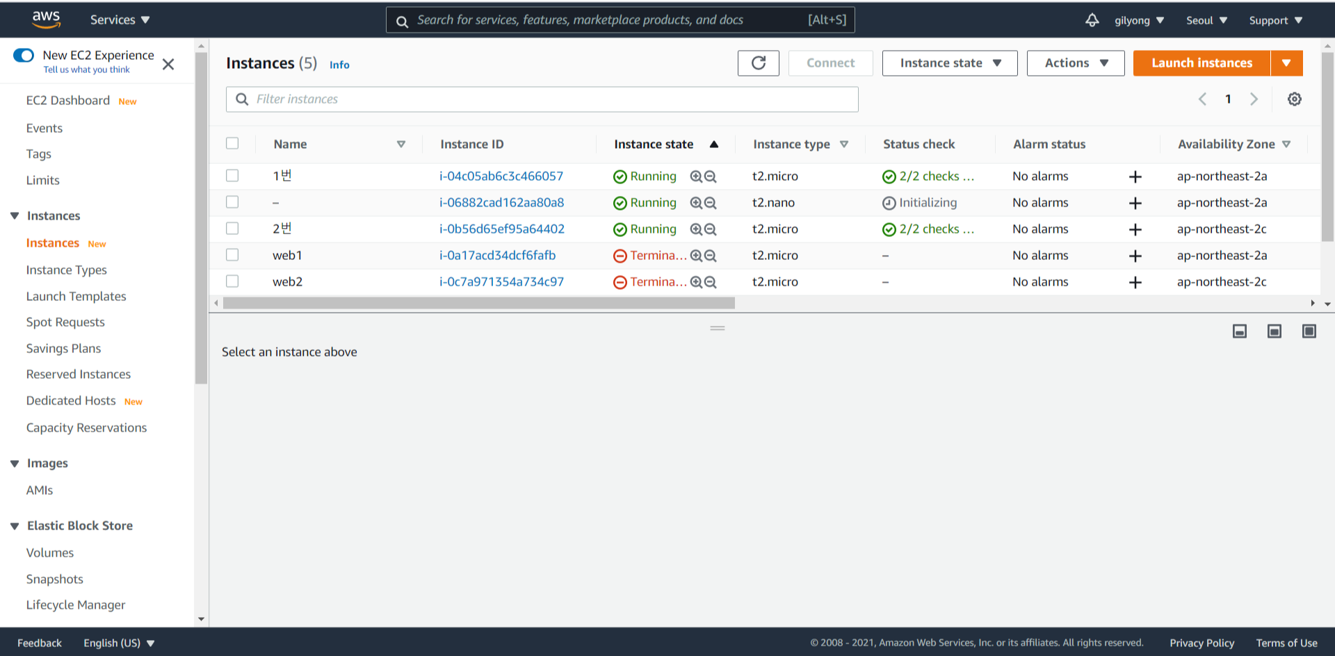 9. EC2 인스턴스를 확인해보니 t2.nano 사이즈의 인스턴스가 자동 생성되었다.