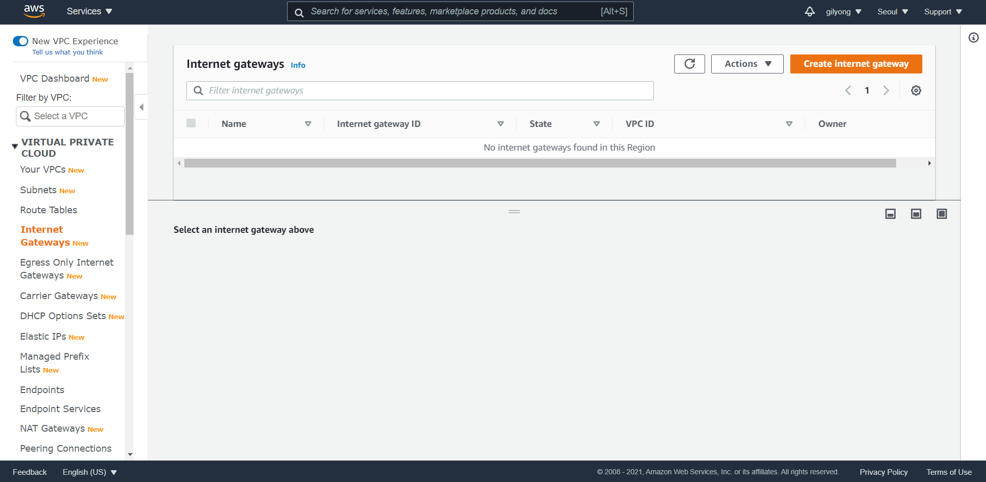 인터넷과 통신을 가능하게 해주는 인터넷 게이트웨이를 생성해보자