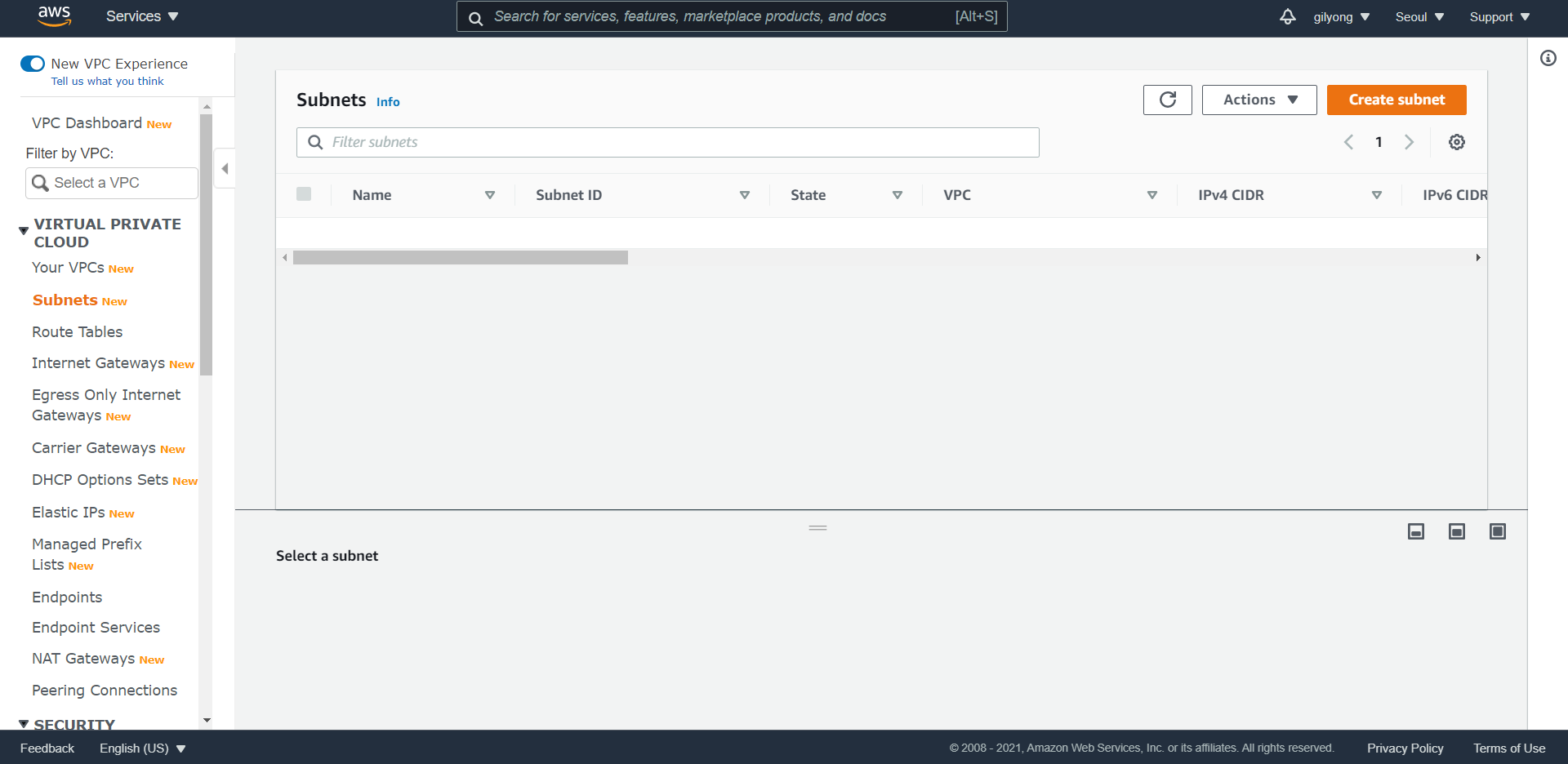 4. 이전에 생성해두었던 서브넷을 선택해주자.