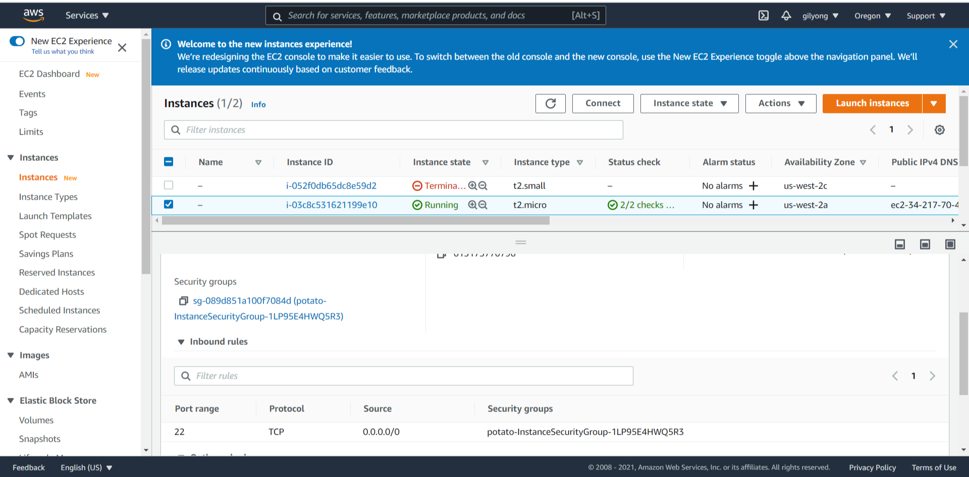 4. EC2 인스턴스와 보안그룹이 생성되었다.