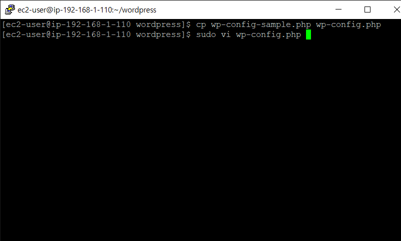 3. 생성된 wordpress 디렉터리로 이동한 후, wp-config-sample.php 파일을 wp-config.php 파일로 복사해주고