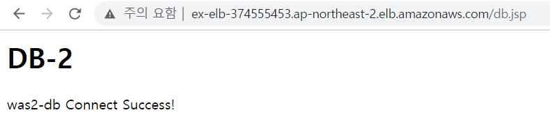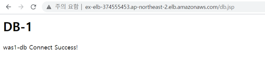 12-3. 위의 모든 준비를 마쳤으면, EX-ELB의 DNS Name/<파일명>.jsp 를 통해 DB와 연동된 jsp 테스트 페이지를 확인해보자
