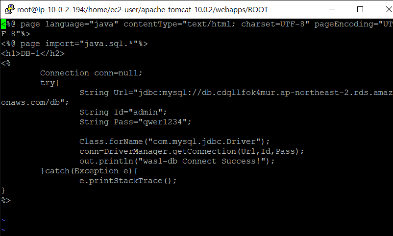 기존의 테스트 페이지와는 다르게 was1-db Connect Success! 라는 문구가 빠진 것을 확인할 수 있다.